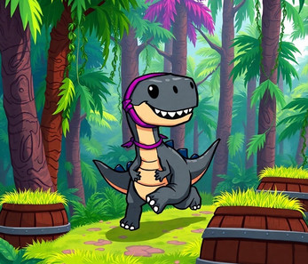DinoRun is a fast-paced, endless runner game where you control a dino racing through the wilderness, avoiding obstacles like mountains, barrels, and birds! As the dino speeds up, the terrain becomes more treacherous, testing your reflexes and timing. How long can you keep your dino running before it crashes?